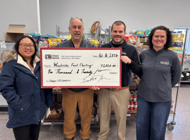Through voluntary payroll deductions and company matching contributions, Fisher Barton team members across multiple locations helped provide meaningful financial support to food pantries serving the communities where employees live and work.